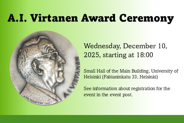 A.I. Virtanen Award Ceremony – December 10, 2025 at 18:00 in Helsinki